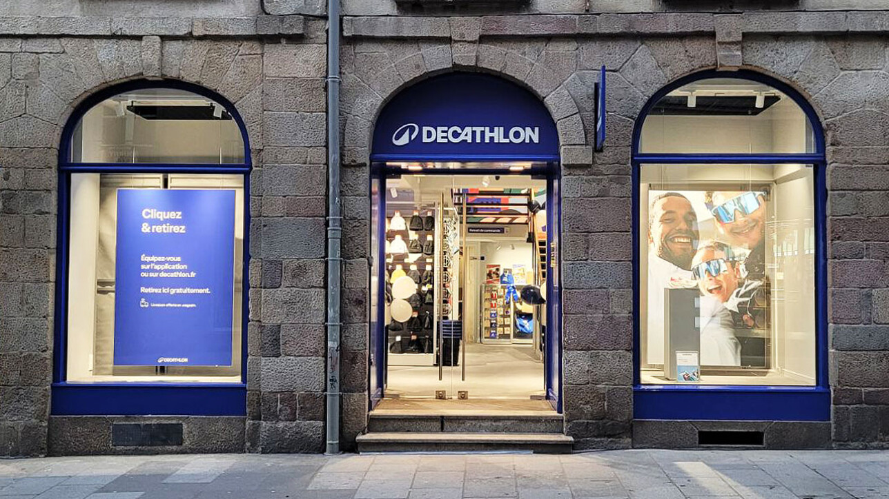 Installée par ICG Commerce, basée à Rennes, DECATHLON succède au magasin de prêt-à-porter féminin HOPE dans un immeuble datant de 1726 au 3-5 rue Le Bastard, artère la plus passante de Bretagne. Dans une boutique qui développe une surface totale d’environ 364 m² dont environ 230 m² de surface de vente répartie sur deux niveaux, l’enseigne poursuit le déploiement de son format urbain organisé autour du running, du cycle, de la natation et du fitness.